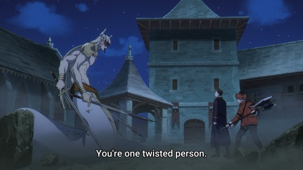 Genau’s former partner apparently died, because he prioritized protecting a child in battle. Genau’s take is that although this made his former partner a good person, it also made him a fool. Sure, I suppose the utilitarian calculus shakes out if you assume that you would’ve defeated the demon.