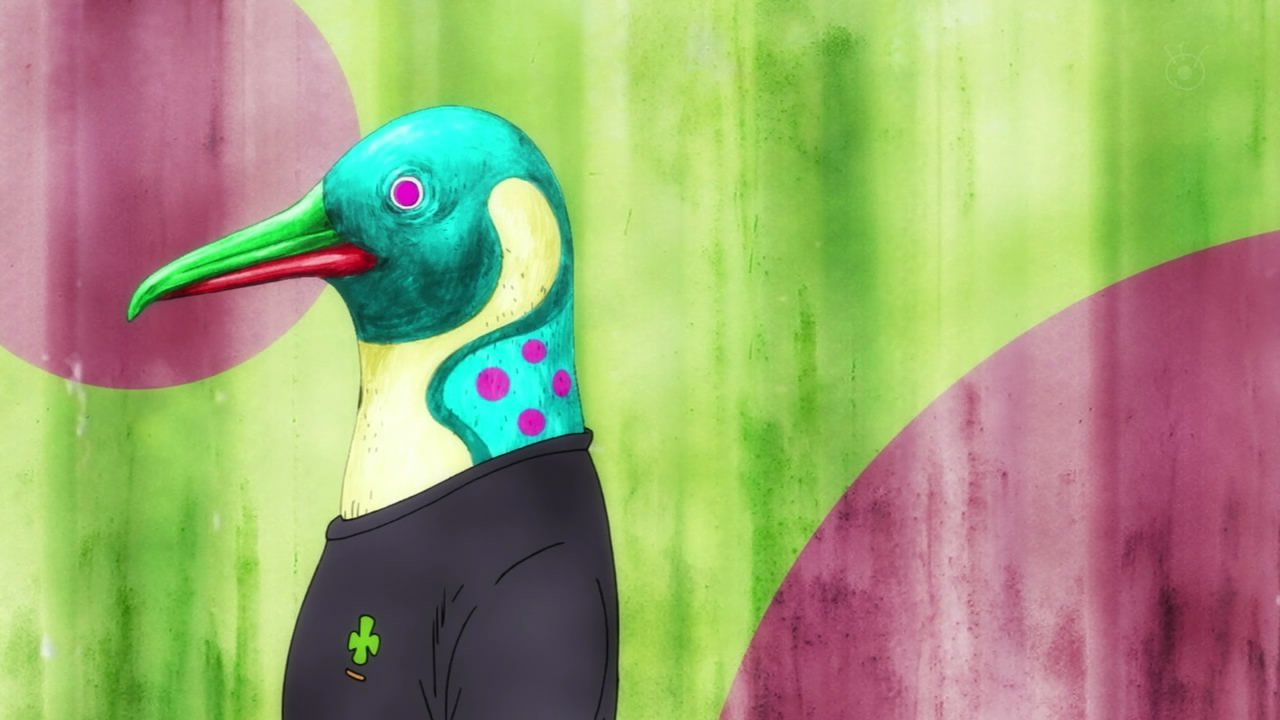 You suggested that the art direction could potentially fit a theme of the show: perception and how it shapes reality. Obviously, we’re only one episode in, but let’s grant this viewing of Trapeze’s first episode. I reviewed certain scenes with it in mind, but in the end, I don’t think it’s enough. If a story has depth, I expect something profound and revelatory, perhaps regarding human nature. Watching Trapeze currently feels like watching a chapter from an intro to psychology textbook, if only with Japanese neo-surrealist flair. No, I don’t think the show is meaningless; I don’t think anything can be completely meaningless even if the author/artist insists it, especially not a mainstream anime series by a big studio like Toei. I’m sure there are layers of symbolism packed into every scene (e.g. the bird and bear heads), but the conclusion of the episode was so inconsequential, I don’t think the symbolism was all connected. That, ultimately, is how Trapeze’s first episode feels as a whole: disjointed and hollow.