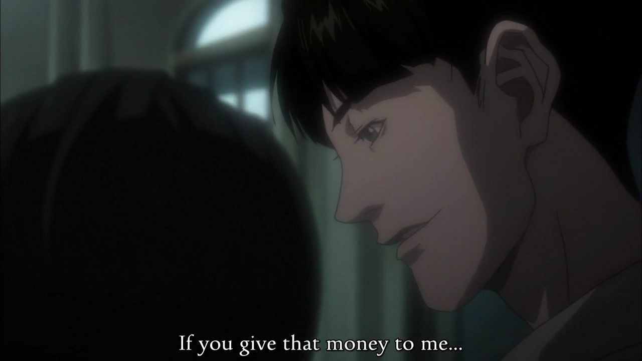 We also get treated to Horiki’s rather exploitative nature in the anime. It’s not quite a huge departure from the novel, but I find that it renders Horiki a little too premeditated. In the novel, Horiki is definitely a bit of a parasite and his company tends to start Yozo upon a downward spiral, but we are never treated to such a clear insight to Horiki’s motives as what we can see pictured above.