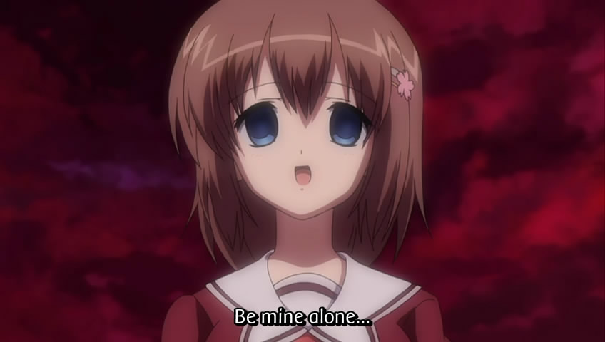 E Minor: Wouldn’t it be cool if she went yandere a la Kaede of Shuffle! That would make a good ending to this show. School Days this shit up.