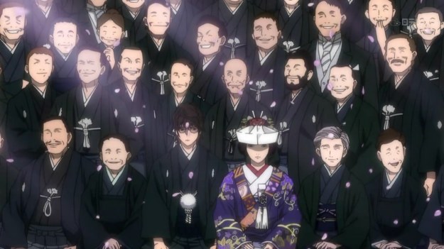 I really liked your interpretation. Had I not seen the picture you posted, I would have assumed something totally different. I had just watched it, and I have reasons to believe it was winter. In the photo of Sensei’s wedding, sakura petals can be seen falling down. Sakura trees usually bloom in the spring. Originally, I had thought the yutanpo was symbolic, and that K realized that Ojosan actually loved Sensei too. I wish it was this way because it would have been easier to show that the reason why he was feeling cold was because of personal reasons and not the season. I’ve come to speculate that the reason why Ojosan chose not to leave was because she found out who she was getting married to and perhaps she changed her mind about how she felt about dealing with being repressed. It’s a very interesting story however and I will make sure to read the novel.