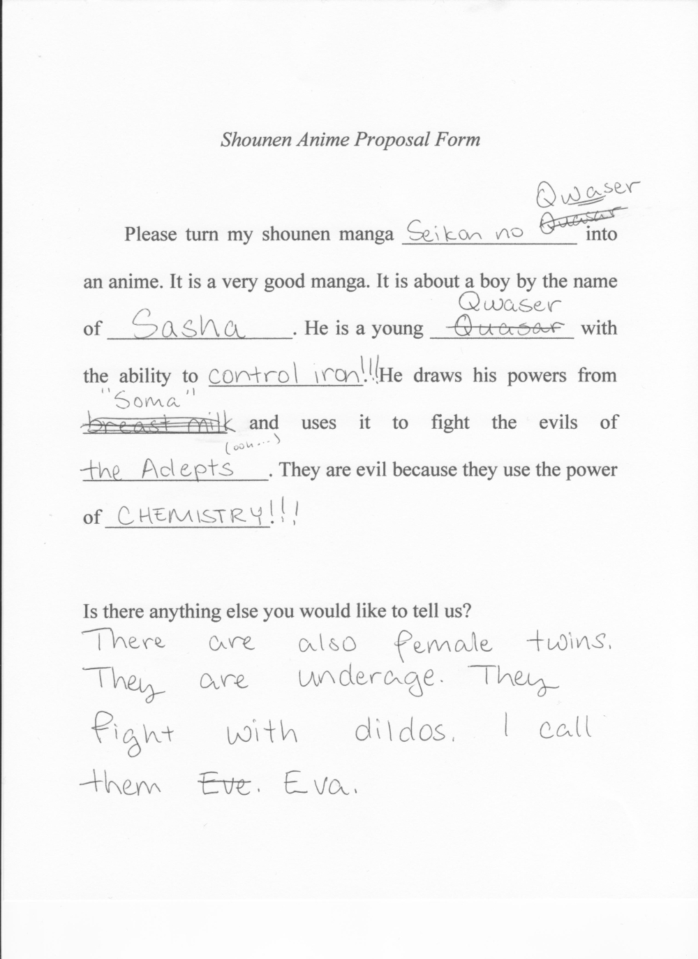 Animanachronism December 3, 2009 at 2:43 am We need more anime that borrow from the Orthodox Church. I’m not so certain we need more anime that mix somatic piety with fanservice, but hey. . . . more importantly, are there similar proposal forms for other genres? Reply ↓