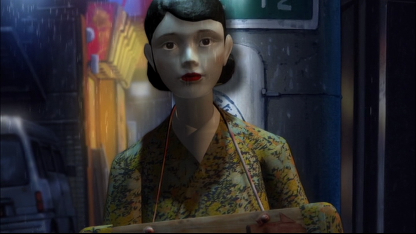 I’ll start with the bad: calling Denpa Teki‘s character designs ‘homely’ would be being generous. The backgrounds are at least passable, but the characters just get more and more cartoonish as the drama thickens. And when the director tries to get a little abstract with two angles at once things really get silly: