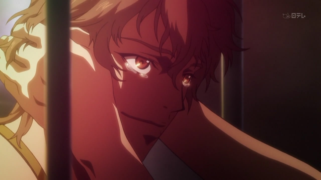 Just as Melos was about to fail, he then takes on Joushima’s face. He then pleads to the audience, specifically to Takada, that he never wanted to hurt Selinuntius, i.e. young Takada. In reality, this is still Takada struggling with himself. He knows that Joushima must have had his reasons for his betrayal, but the pain was and is still too much as he screams,