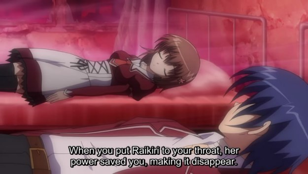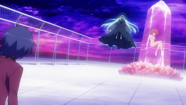 Liselotte then made out with Kakeru’s eye. Yep, his eye is bigger than her fucking tongue. Shiori then sacrificed herself so that Kakeru can use her space/time powers to toss Liselotte into a rift. Why they didn’t do this in the first place is anybody’s guess. Of course, Kakeru can’t do it alone.