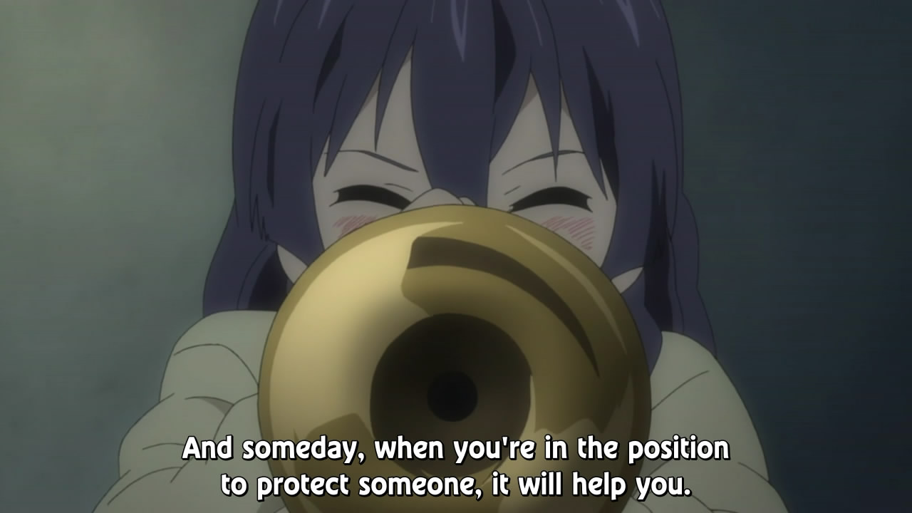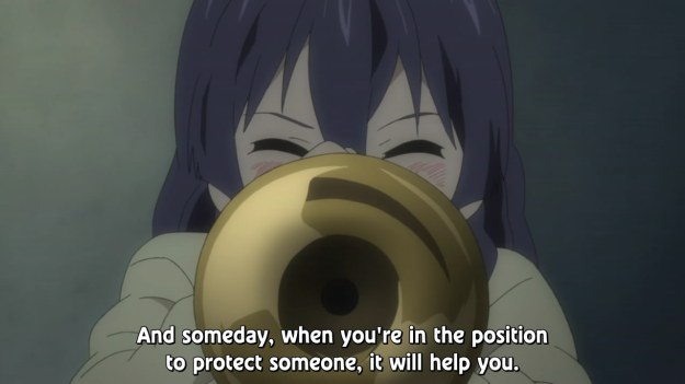 This also mirrors Rio’s mini-speech to Kanata. Although the song references God, we can just take “He” to be any person of guidance, that superior that Rio speaks of. That superior will  protect the wayward like Kanata, who will later turn around and protect others.