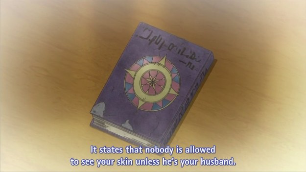 Hay guyz don’t people in the Middle East have weird customs and laws? The anime contradicts this later anyway by having the servant literally bathe Ayse. Awrah among unrelated women is really no different from unrelated men, but that would require the anime to actually care about the culture they’re stereotyping.