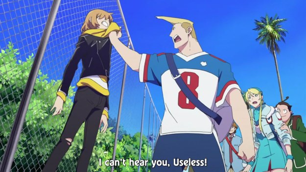 He’s shorter than his love interest, he’s got long hair and the way anime is drawn nowadays, you really can’t tell from a distance if he’s a guy or a girl. He’s employed as a waiter(ress), and hell, he’s got one of those ambiguous names like Leslie or Taylor. None of the above qualities are inherently bad, but keep in mind that this is the launching point for the anime. In a coming-of-age story, Joey’s at his most nascent, underdeveloped stage. He’s supposed to grow and change from this point. Most heroes don’t start out as heroes at the beginning of a story. Let’s cut to the chase: you usually start out as a loser and only become a hero after going through much difficulty and many trials. The cold and simple fact is that a young boy like Joey’s a loser.