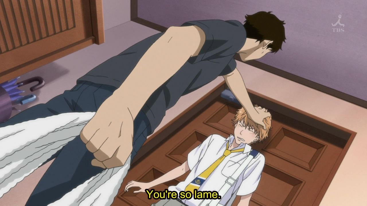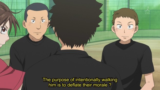 That’s not cool, big bro. Anyhow, the camaraderie between Mihashi and his teammates are endearing. There isn’t any silly romance subplot tacked on yet, but even if there was going to be one (I wouldn’t know, I haven’t read the manga or anything), it’s probably not going to be some sappy love triangle full of meaningful stares and poignant vignettes. In Kokoyakyu, a coach pushes his team hard because he believes you need heart to win. I can buy that. There are supremely talented athletes who have failed on the biggest stage because they lack that heart (Vince Carter anyone?). I think heart is important to baseball too, especially for younger people learning not just how to play as a team but how to be accountable to the team. If Ookiku Furikabutte was about the heart, dedication and sacrifice one needs to devote to the sport, I’d be cool with it. Unfortunately, the anime thinks it’s smart about the game when, sadly, it’s when the game is actually played that I think the anime falls apart.