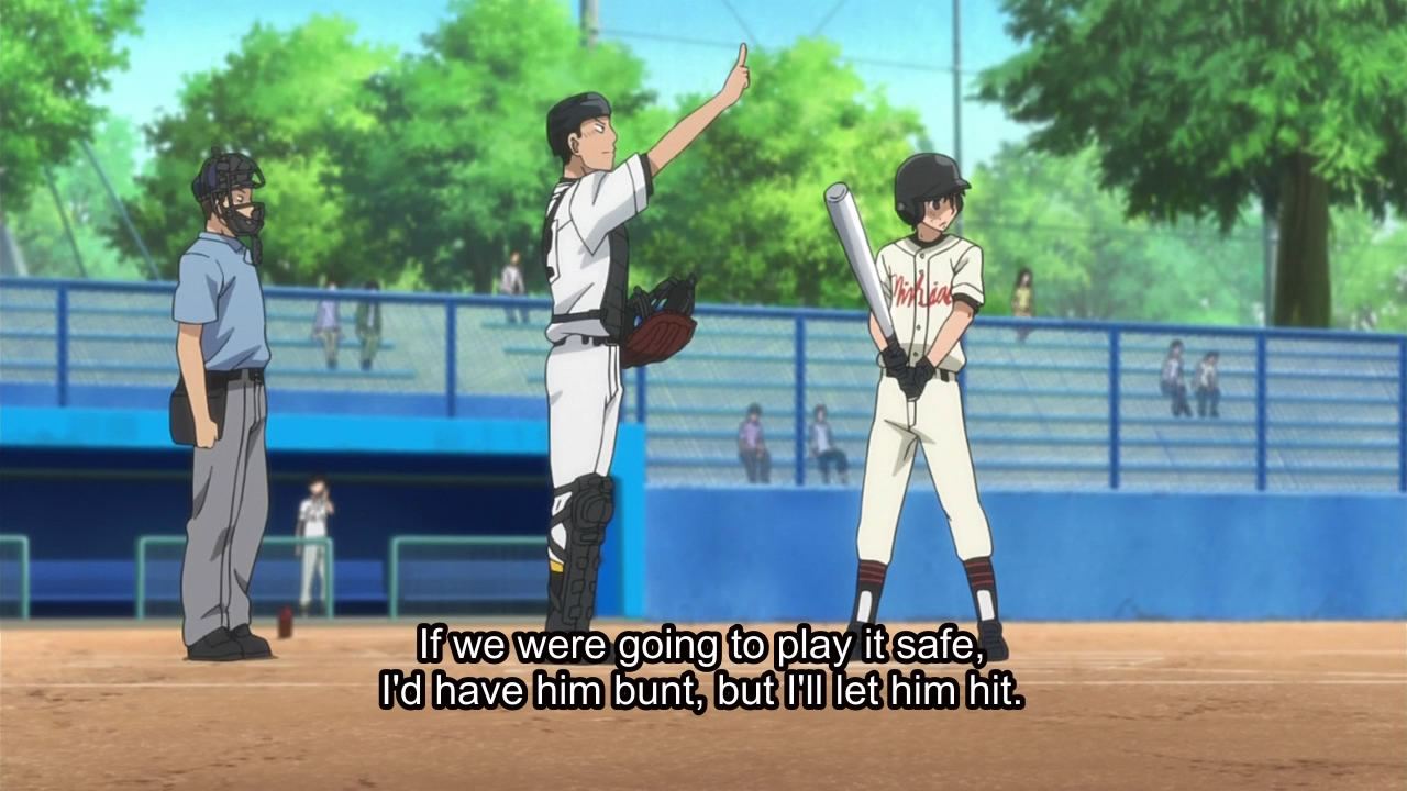 The irony is that teamwork is so praised in baseball when the reality is that, of all sports, baseball mostly boils down to individual matchups. There’s a reason advanced statistical analysis has caught fire in the baseball world. VORP, FIP, WARP3… they’re not just random acronyms pulled out from some some nerd’s ass. Since 90% of the game can be reduced down to pitcher vs. batter, it’s easier to analyze the game discretely as opposed to a more fluid sport like, say… soccer. In such a reality, every action in baseball can be quantified in terms of its chance to put runs on the scoreboard. Unfortunately for baseball anime, steals and bunts tend to hurt run production more often than not due to judicious use from “strategic” managers. In fact, it’s sometimes downright stupid to bunt.