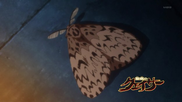 3. Soon, the villain flays her latest victim. Yet again, we are treated to that dumb moth.