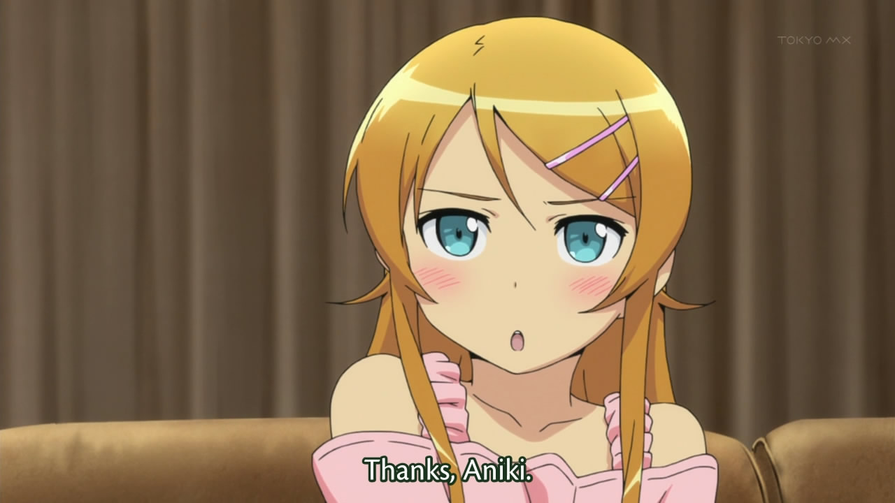 Oreimo was the first anime ever watched, the final episode nearly had me to tears! I love Oreimo, FUCK what the haters think, they say it’s unrealistic? So’s like, 99% of all anime’s!!! I wish they would just continue the series, every time Kyousuke’s been there for his sister, I always wish I could’ve been there for my sister. Let the hater’s hate, they can’t stop us from waching. :]