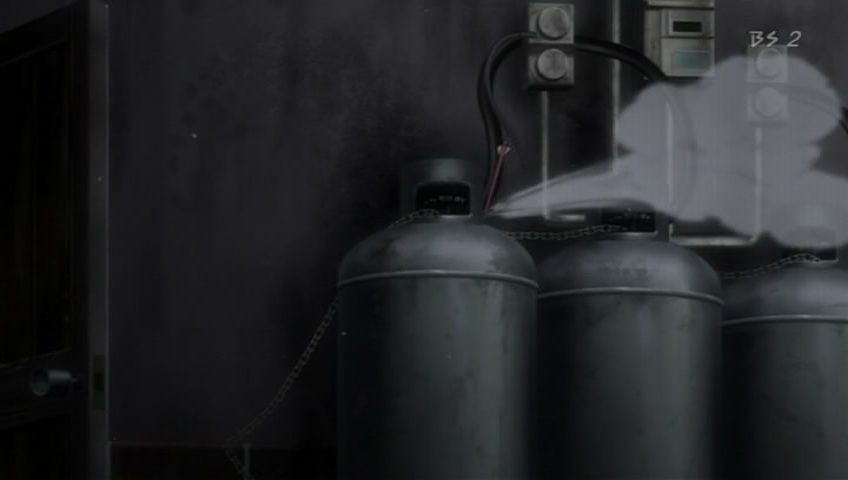 So Nanase just calmly stood up and shot some conveniently located gas tanks. Slick shot. Our heroes then probably thought “Oh well, gas never killed anyone!” They must have been thinking that because they just stood there. Again. Crazy girl got the chance to then grab her stun gun, rear her arm back, and throw it at the gas tanks.