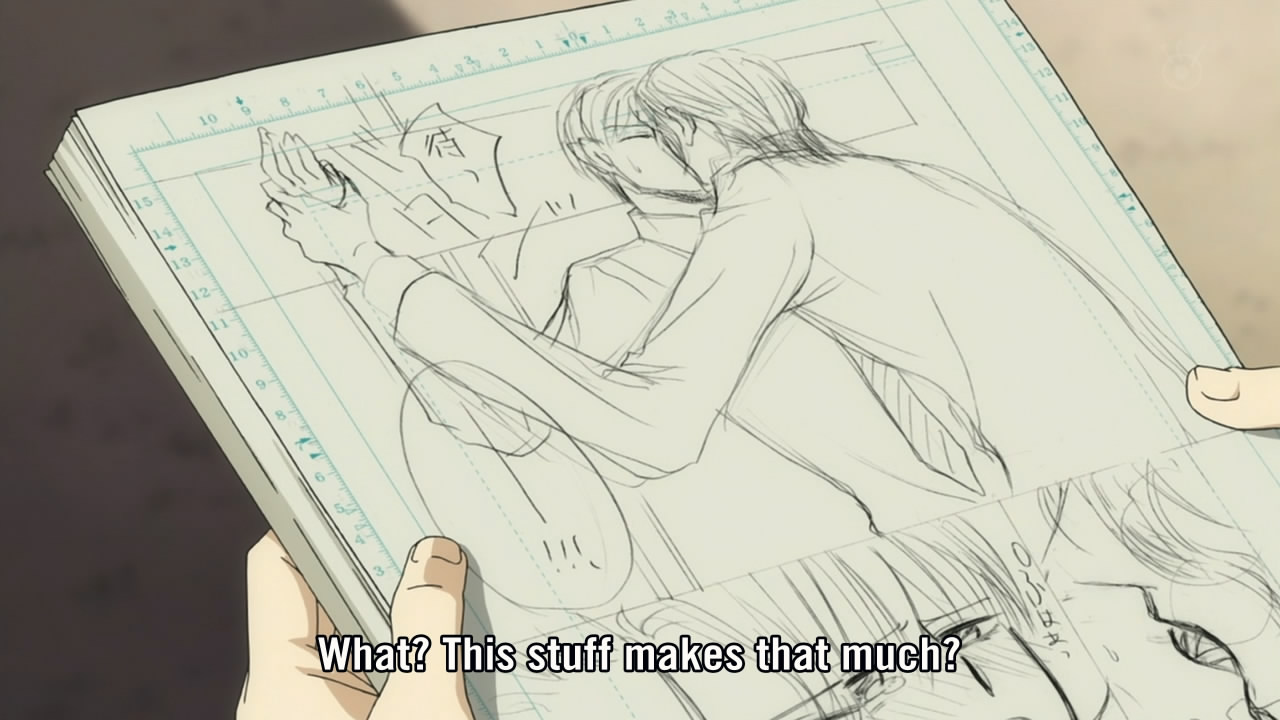 As nearly as I can tell they played this one straight. She could sell some dolls and save everyone, but not only will she not, but also we’re apparently supposed to believe Koibuchi had no right to ask. I can’t get over how much anime these days seems to be about empowering dorks to ruin their own lives. Keep your obsessive collection, fuck your friends! Try to go pro as a mangaka at 16, start blowing off school! Screw around with your amateur music club and let your little sister manage your life like you’re mentally retarded! Of course at the end of K-on! there was this little nod to “maturity” when Yui goes through one study montage and magically gets into the same school as everyone else, and I’m sure Kuragehime and Bakuman will end similarly, with “do as I say, not as I do” episodes where everyone grows up. But in the meantime they seem content to just revel in the idiocy of nerdy youth to the point of glorifying it.