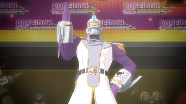 Is there a meta commentary going on right now about Japanese TV? This is the second anime this season so far with a game show theme and there might be more since I haven’t seen everything. More importantly, what’s with the crass commercialism? Is this a Japanese Robocop?