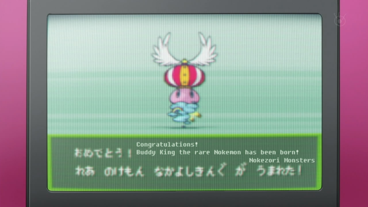 What I was most struck by in this episode besides the use of Pokemon as a plot point (complete with a cathartic NOKEMON GETTO DAZE!) was the dynamic that Poppo created. The show really needed a character who is unequivocally rooting for Jintan (and is not completely childish) but also understands some of what he is going through thanks to basically being a drifter. The cheery attitude and speculated wanton behavior may hold a deeper trauma but for now he is helping Jintan move in a healthy direction. I know from experience how important it is to have someone like that who can give you a leg up and make you feel a little bit more at ease in a social situation.