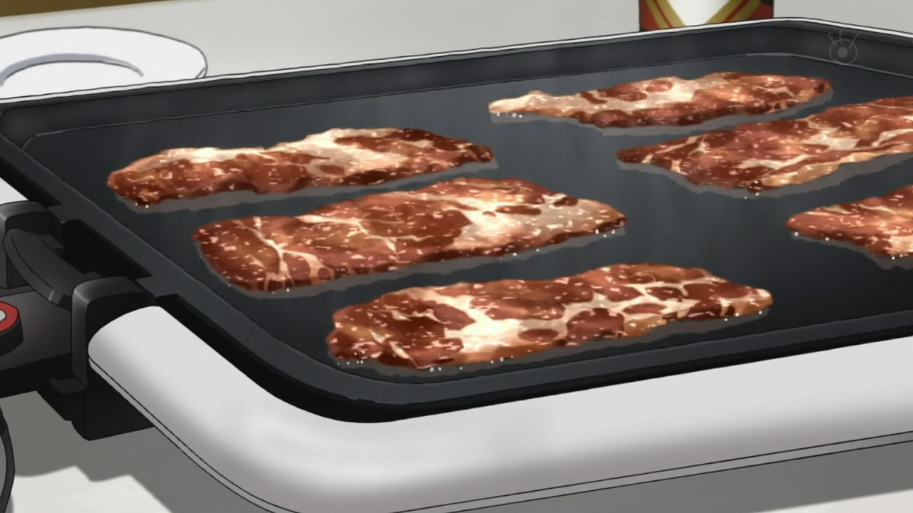 The animation doesn’t blow me away, but as a whole, the show is pleasant to look at. Except this… they really put in the effort to animate yakiniku.