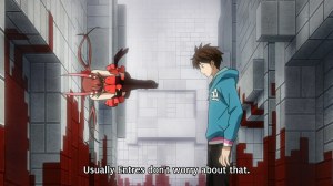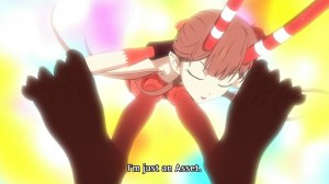 My biggest beef? Every time she gets hurt, and it looks pretty excruciating when she shields Kimimaro in the second episode, Kimimaro naturally asks her if she’s okay. Msyu will then reply along the lines of “it’s odd for you to care about my well-being” and “I’m just an asset.” Really? Are we really going to go there? What is ‘there,’ you might ask? ‘There,’ where another female character in anime had been nothing more than a tool in her existence up til this very point, with naught to care for but obeying the orders of ‘entres.’ Thank the heavens, however, that a shounen ubermensch has come to teach her a thing or two about humanity, that she’s worth caring about, and maybe — just maybe — she can learn to… love. Give me a fucking break.