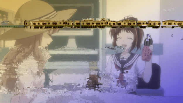VLC kept throwing out these weird encode errors, so I stayed awake by trying to screencap them all. The actual show has the flattest visual style I’ve ever seen. Every frame looks like it could be a painting on the wall of a shitty motel in a better anime. The palette is muted, the characters are largely static, and worst of all the directing is atrociously safe. Sit down and watch an episode, count how many montages you see. Production I.G. has always had kind of a plain-Jane approach, but this is just awful.
