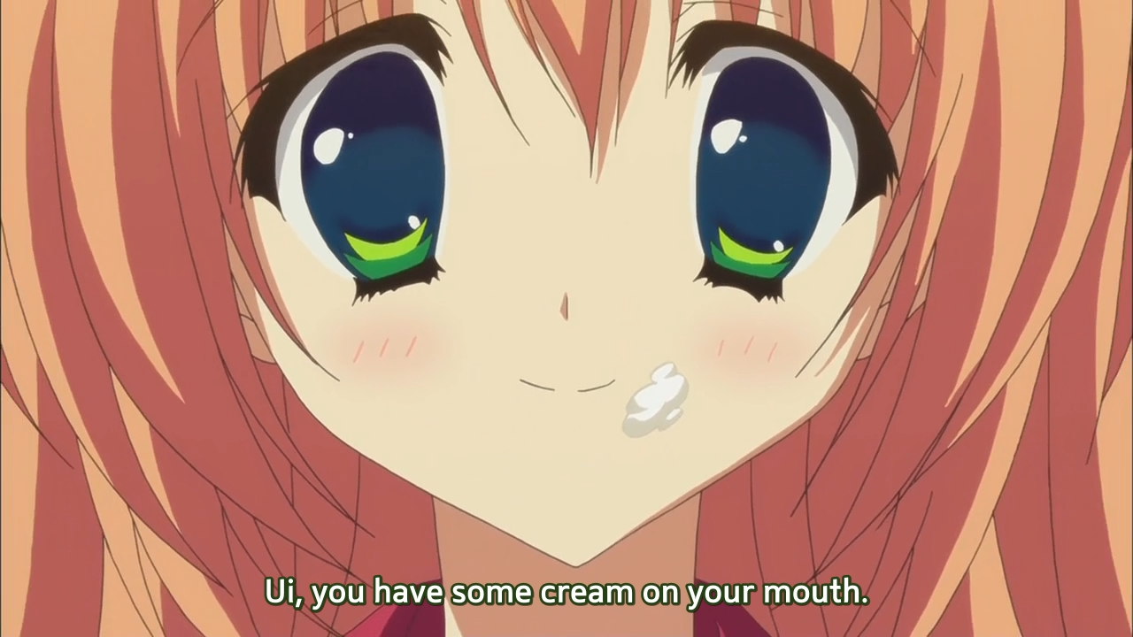 As he lightly wipes the cream from her lips, Ui coos, “Thank you, oniichan,” much to everyone’s shock and Ayumu’s apparent dismay. She confesses that she couldn’t help it; after hearing Ayumu call Kazuma oniichan all day long, she too had the burning desire to utter that very word. Much blushing was had and the room fell silent. A distraught Kazuma has nothing to say. With that, we retire…