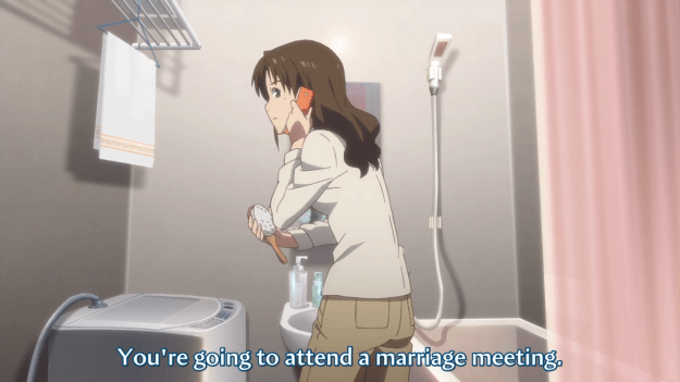 First, Tomoe continues griping over her lack of marriage prospects. She’s only 28, but I guess that’s already too old. She’s debating whether or not she should quit and return home.