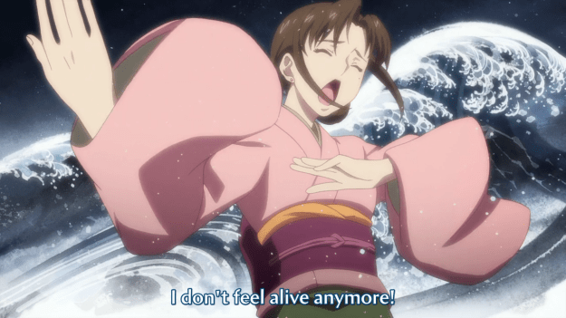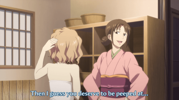 He’s gonna help out with the inn next episode and when the dust settles, they’ll stare into the other person’s eyes… doki doki. Maybe if he’s lucky, they’ll hold hands, then his ass is back to Tokyo. Book it.