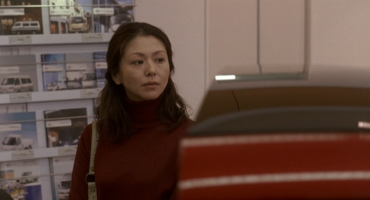 Megumi plays Ryuhei’s quiet wife. Her despair is similar to those of many women in her position. Trapped by the daily chores of cleaning, vacuuming, and cooking, she longingly stares at a red convertible one day, a symbol of her unrealized freedom.