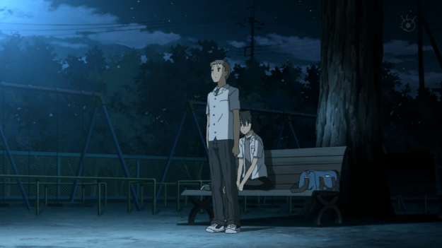 Anjou’s scene reveals another limitation of the half hour format. I feel as if this was her most significant moment all series long, even if it is half a confession of love to Jinta. Even if only during this scene, Anjou elevates herself from being just another side character. It is thus a disappointment that we don’t revisit Anjou again until the end of the episode where she once again fades into the gang of friends. Another half hour could have included not just Anjou’s reaction to her own confession, but how she felt when Jinta simply left her.