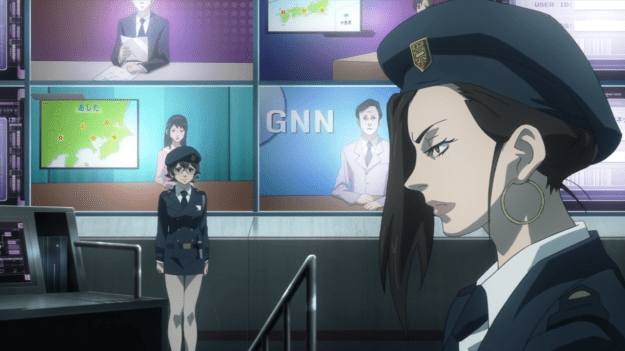 the anime quickly moves to distract the audience with nubile girls (in a prison seemingly full of men — where are the women at?)