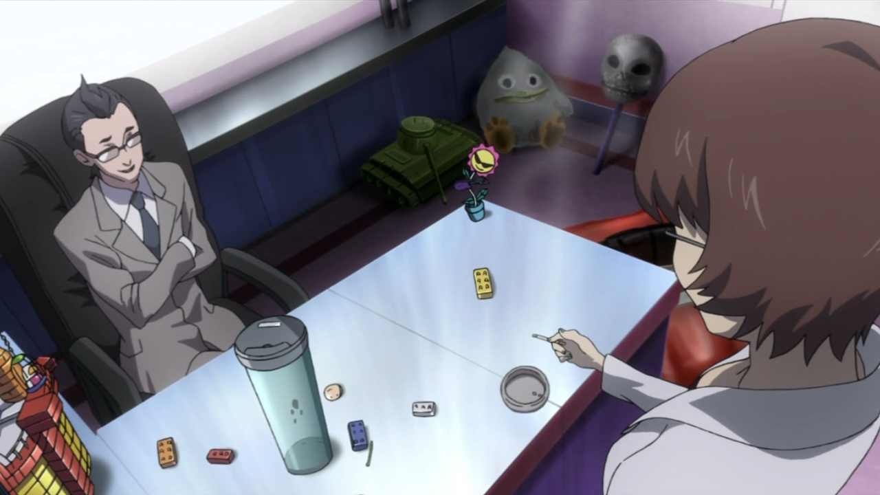 • Then there’s Promoter Tamaki and whoever follows him (like the lab coat lady whose name escapes me at the moment — the one who carries out the penalty games), his ghastly prison experiments and inhuman gladiatorial matches. They may as well just name him Mengele.