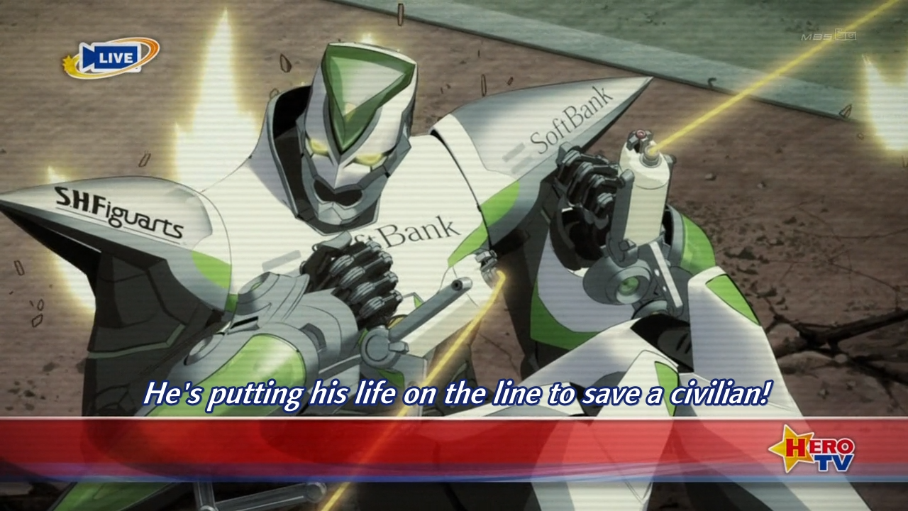 Here’s Tiger & Bunny‘s dilemma…. This episode is definitely one of the better episodes all series long, but it’s bogged down by such lazy writing and I’m not just talking about the ‘Master Jake’ thing. I’ve repeatedly written all season that many anime lack tension because the characters are never put under any pressure. In this episode, the heroes are seemingly in trouble, “overwhelmed,” and the villains appear to have the upper-hand. So why, then, does this episode still fall short of hitting the mark?
