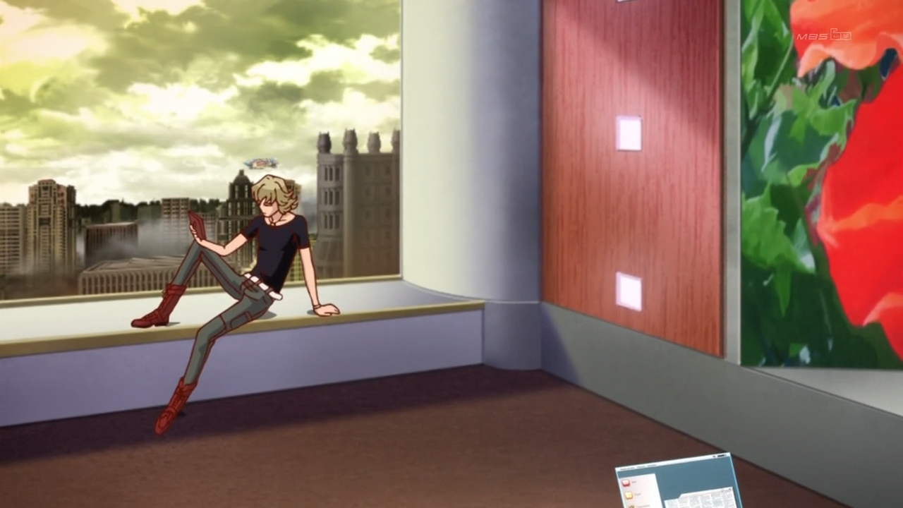 Hurhurhur the QUALITY ANIMATION of Tiger & Bunny never fails to entertain me. Kotetsu gets to go to the hospital because he’s in critical condition (read: near death) while Sky High and Rock Bison are chained up. Oh my god I didn’t realize this. But I guess it’s because Agnes is a horrible bitch who thinks that ‘intensifies’ the show. IDEK man, I’m beyond caring for the inconsistencies and the lack of logic here– T&B is too much of a fun watch for it to be, you know– logical.