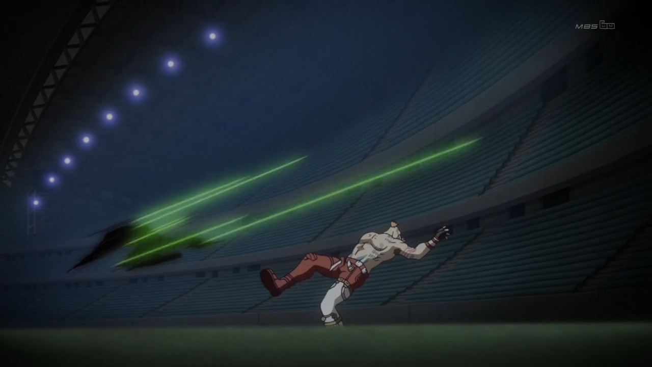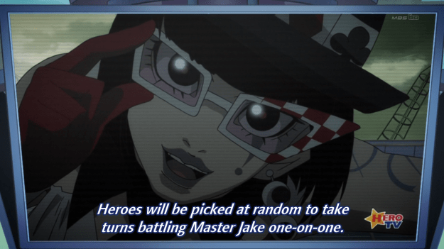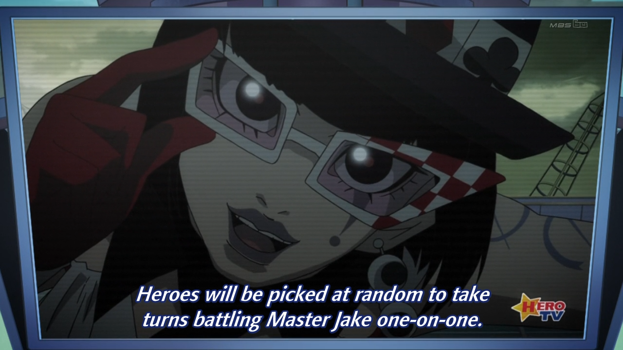• Very shounen-esque this week. You know how it goes: one of the heroes launch a barrage of attacks, but the attacks all miss the evildoer somehow. Sky High’s wind abilities may as well just be ki blasts. I can’t wait till Barnaby puts up a fight so they can warp around at super speed chanting “Omoshiroi” at each other.