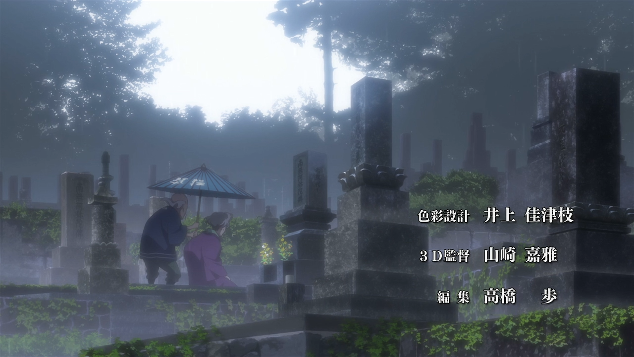 Huh, that scene in the opening probably means they’re going to delve deeper into the Matsumae family’s past and their dead ancestors – if the opening is to be believed. But then again, Hanairo has a bad rap for being misleading in its “next episode” previews.