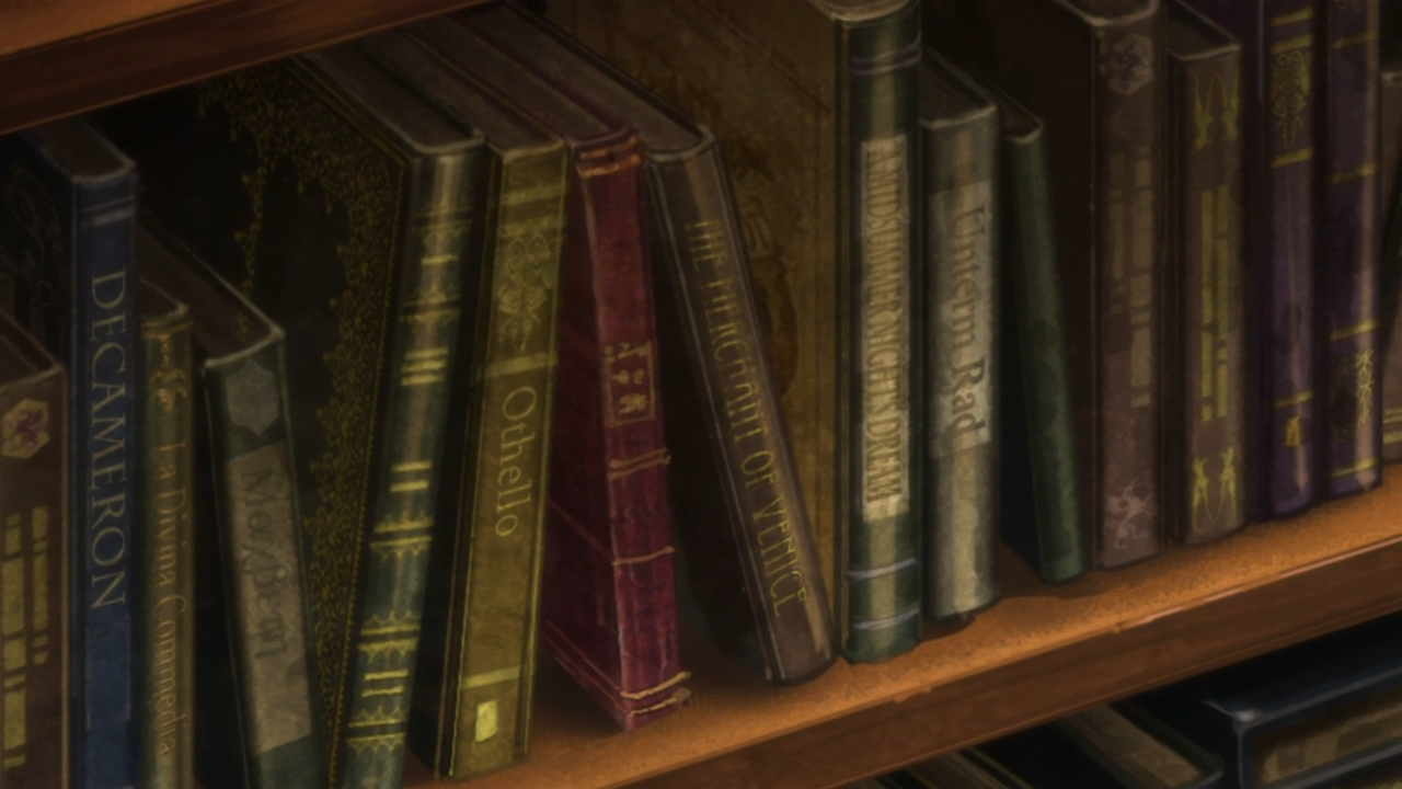 Eh, in re: the bookshelf, just realized the Decameron is actually an interesting choice if you’re aware of its premise. So the bookshelf reads as “Shakespeare + Dante” == great old classics, the Decameron an interesting additional classic to throw in, and the Hesse novel interestingly modern / relevant.