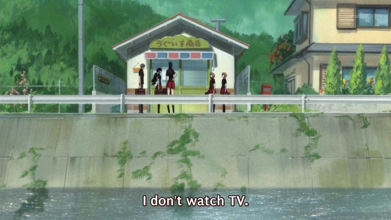 The CLAMP fanboy within me is telling me how this all is a giant masterplan to show us how desolate the village is an how strange (not necessarily baddies, but I wonder if all of them are civilians unaware of the masquerade) the few inhabitants it has are – I’ve been getting creepy vibes from the teacher since ep. 1, and I also found the blue haired chick weird in the first episode, although we haven’t really seen much of her and thus she is now off my radar. And the twins are the second most likely character to turn into a monster or monster slayer or whatever, after the teacher.