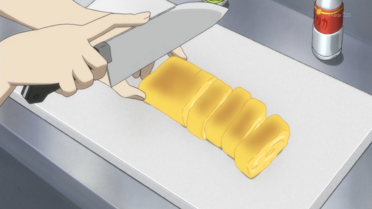 They’re carefully watching over Saya as she learns to slice tamagoyaki (it’s hard!). Oh, our little Saya’s growing up! She’s going to make some morose, emo boy so happy! “…whatever, it’s not like I wanted to eat your obento anyway….”