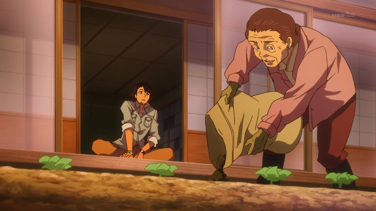 Let’s hope Kaede doesn’t have the same crappy 2 min. limitation to her power like Kotetsu. We turn in our uniforms this week for some by-the-numbers family drama. Mostly, old man Kotetsu re-evaluates his priorities. I’m not trying to be mean to Kotetsu in saying what I’m about to say. After all, he’s the best character on the show. It’s time, however, for Kotetsu to retire and I hope the anime doesn’t pull a 180 on his waning abilities. An ending where Kotetsu goes home for good is only fitting for someone who so resembles a Grecian hero.