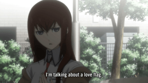 Early in the episode, Kurisu and Okabe talk about Okabe possibly having triggered a love flag with Ruka(ko). When Okabe later seeks help for his upcoming date with the shrine maiden, Daru suggests that Okabe use an eroge walkthrough. Lately, there seems to be a lot of nods and winks to anime’s visual novel roots. Certainly, a lot of anime do originally start as visual novels (for instance, the Key series), but for what purpose do this meta-references serve? Yes, this episode really resembles a dating sim — so what? These callbacks don’t seem to be making any deeper point, so they just stick out like a sore thumb in the narrative, ruining the story’s immersion.