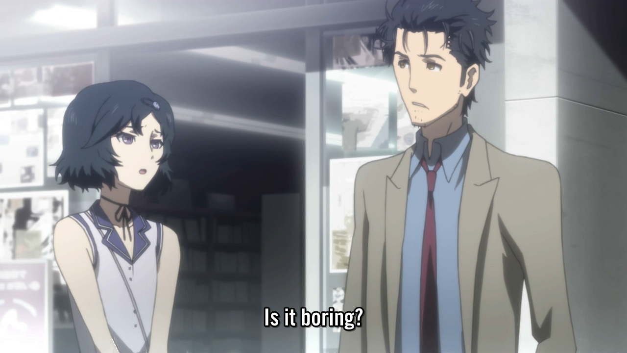 Honestly, Okabe is so generally unlikable I’m not sure why I’m still watching. I was really surprised to learn that people were actually getting upset over the moeblob’s almost comical repeated deaths, too – I don’t find her sympathetic at all and wouldn’t really care if she stayed dead. Why am I watching this anime again?