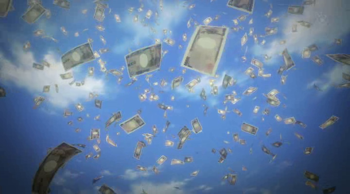 Anyway, Yoga decides that the future is more important than the present and that he has to stop Mikuni, and they have a big dramatic battle between their finance pokemon. The IMF lady and a skeezy information broker collaborate to destroy confidence in the Japanese Yen, making their assets similarly worthless, so Yoga wins, of course, and tells Masakaki to stop the printing presses of the financial district. Yoga says he wants to buy back the future, and there’s a long flashy End of Evangelion style sequence where everything liquidates and flies upwards. When Yoga wakes up, Japan is fixed (except now everyone uses $USD), and Masakaki appears again to tell him it was all as planned by some kind of higher power, who is shown briefly in a celestial boardroom. The show ends without explaining further.