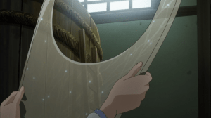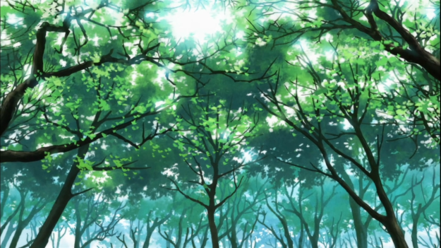 • Hibino suddenly breaks out in tears while standing in the forest. Apparently, the forest gave her a vision of something simultaneously and immensely beautiful and sad. From what I can tell, however, she seems to have seen a younger Aki.