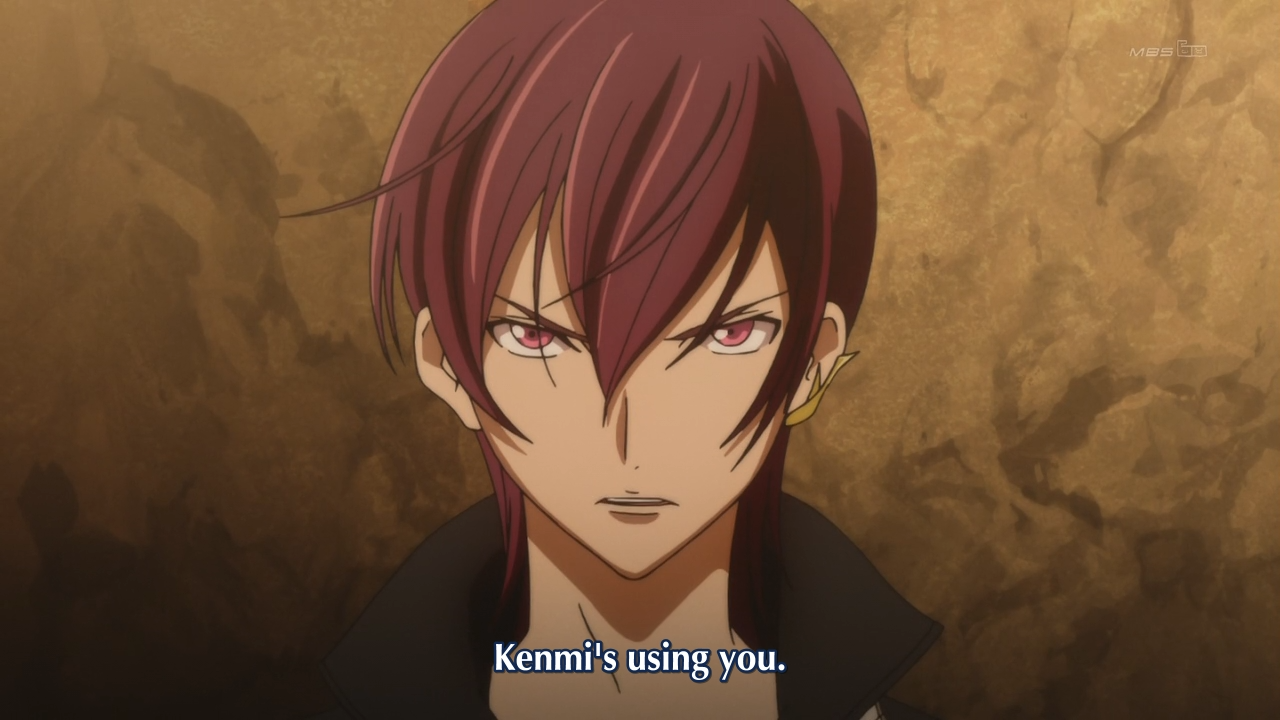 Right off the bat, i.e. the third episode, we get the vibe that Kenmi isn’t a good guy. When the good guys finally learn that Kenmi’s a bad guy, the audience’s reaction can only be “Duh.” Eventually, Arma and co. will have to take Kenmi down, and when that happens, I bet you anything that this plot event will play out staightforwardly. After all, Arma and co. barely know this guy so why should they give a damn if he dies or not? Kenmi already feels like wasted potential.