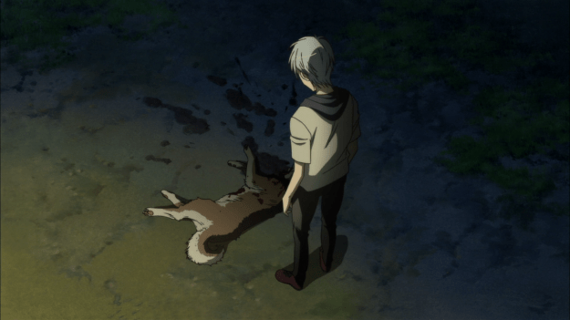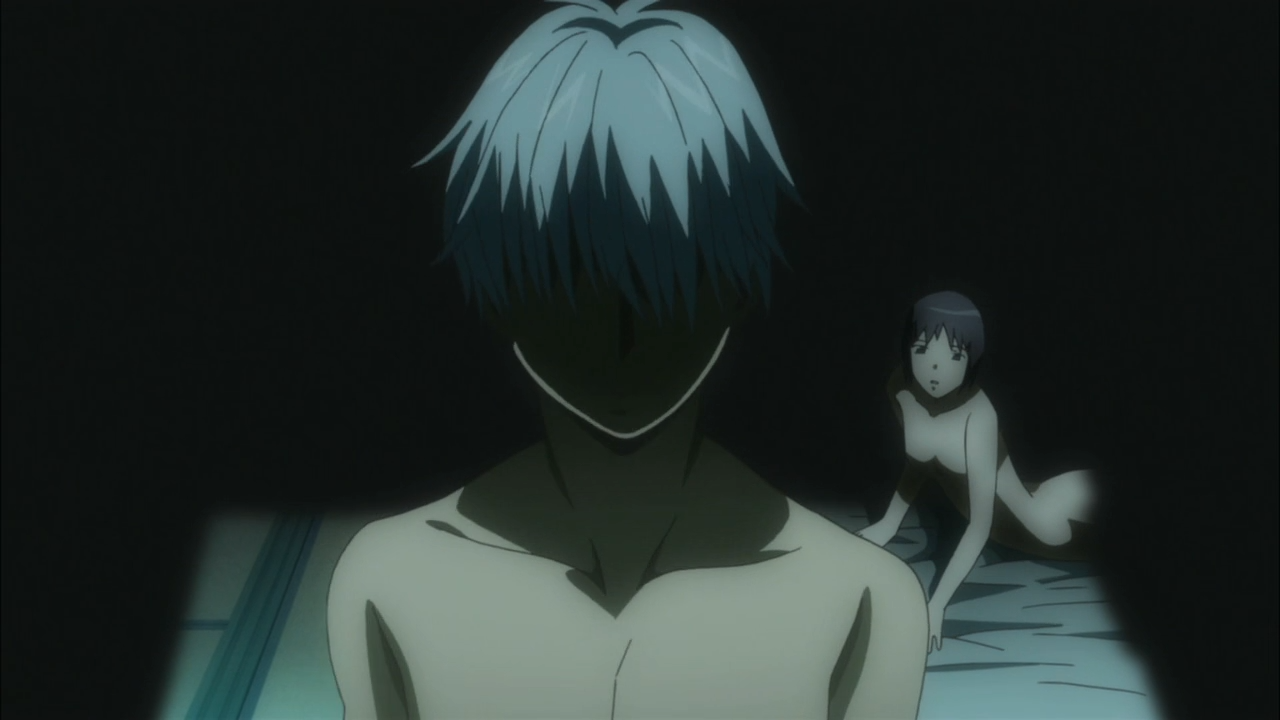 So what am I trying to get at? When I watch Aki’s backstory unfold, I’m not moved to sympathy; I just feel manipulated. Aki is a brutal murderer and mentally deranged so how do we get the audience to sympathize or even empathize with his character? By, of course, having him be the target of bullies and ostracization. By, of course, killing Aki’s pet, a cute dog; after all, the audience is always sad when an innocent animal dies. Last, but certainly not least, you can tug at the audience’s heart strings by stealing Aki’s woman. What’s that term they have in the anime/manga subculture — netorare? Yes, that; Senou is only in the story so the anime can rape and steal her away from Aki. I just find this emotionally manipulative and lazy.