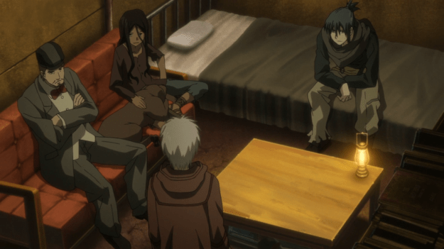 We’re also seeing more stuff slip through the cracks due to the compressed narrative. We had time this episode to explain how Nezumi knows there’s some special facility inside the correctional facility — maybe he knows from having been in there, maybe the architect told him, maybe the dogkeeper found out from her source — but instead it’s just stated as a fact.