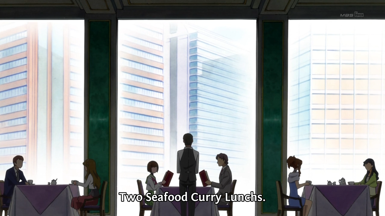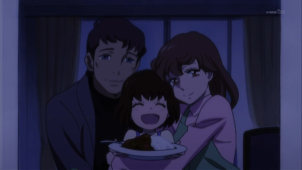 Ringo’s fondest memory of her parents exists in the form of a photograph. The photograph contains four significant subjects: Ringo herself, her father, her mother, and a plate of curry in Ringo’s hands. Her family has since fallen apart and she can only eat curry with her father on specific visitation days. Last week, I talked about how Ringo hopes to symbolically cannibalize her sister’s traits and memories in order to bring her family back together. If we take a look at her actions, we will also see that she constantly plies Tabuki-sensei with food.