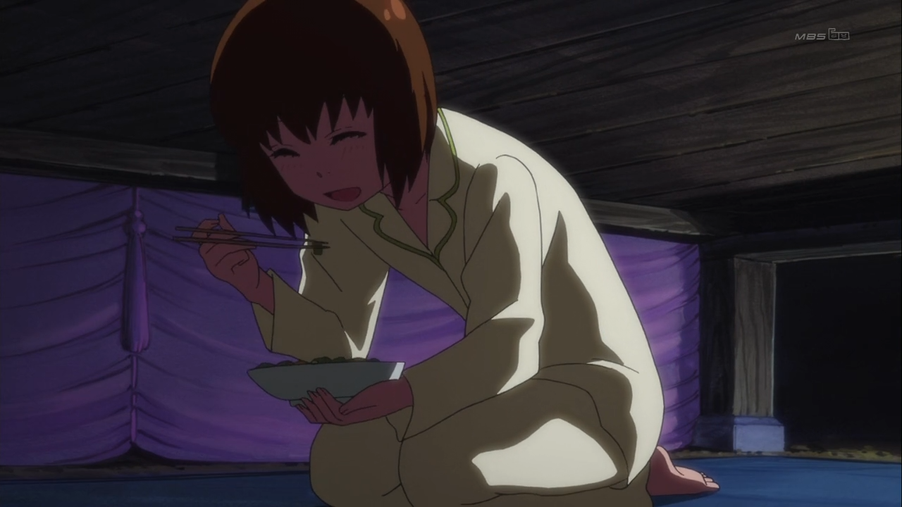 I love Ringo and her total lack of marbles… as long as it doesn’t involve making frogs lay eggs on Shouma’s back. I was eating one of my favorite muffins of all time watching that, and I completely lost my appetite. Which most of the food shown in the post thankfully brought back.