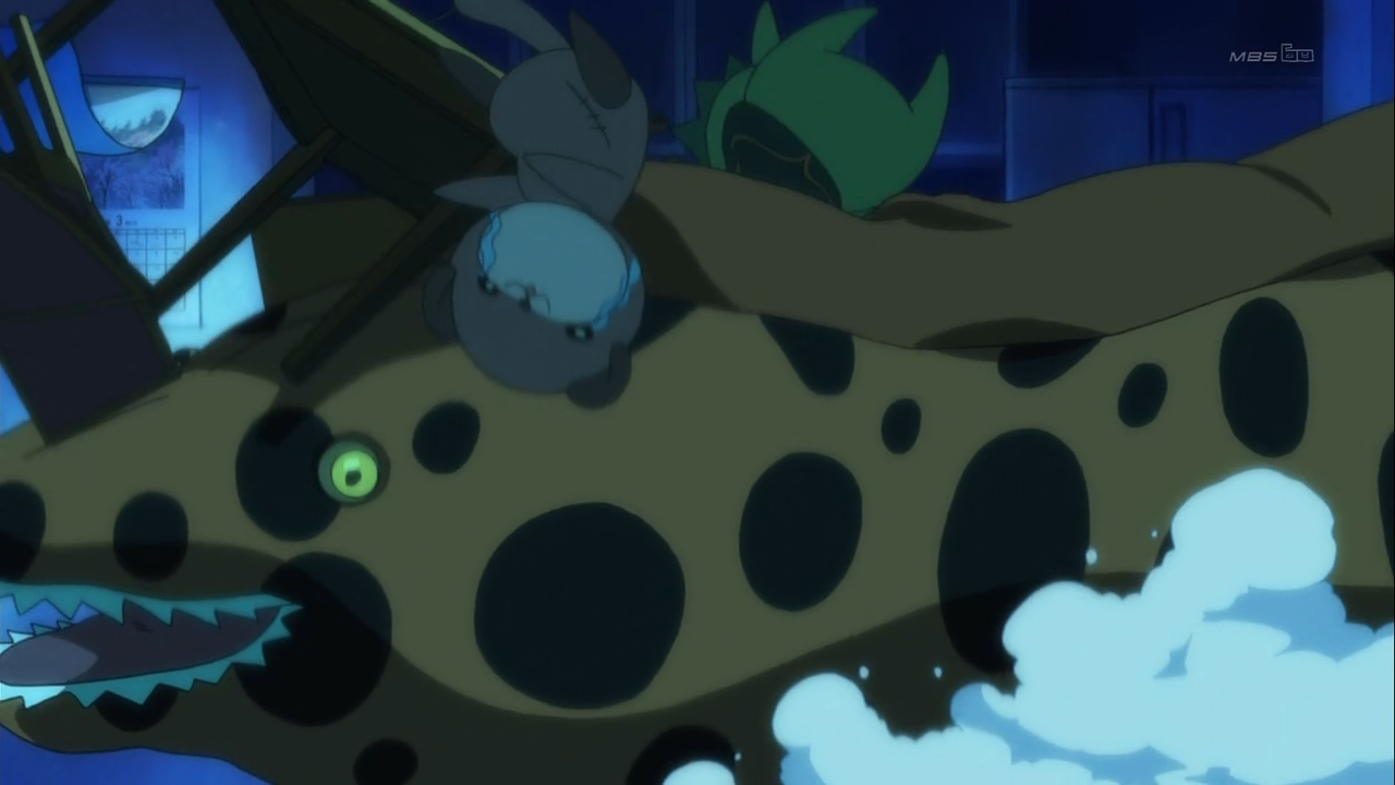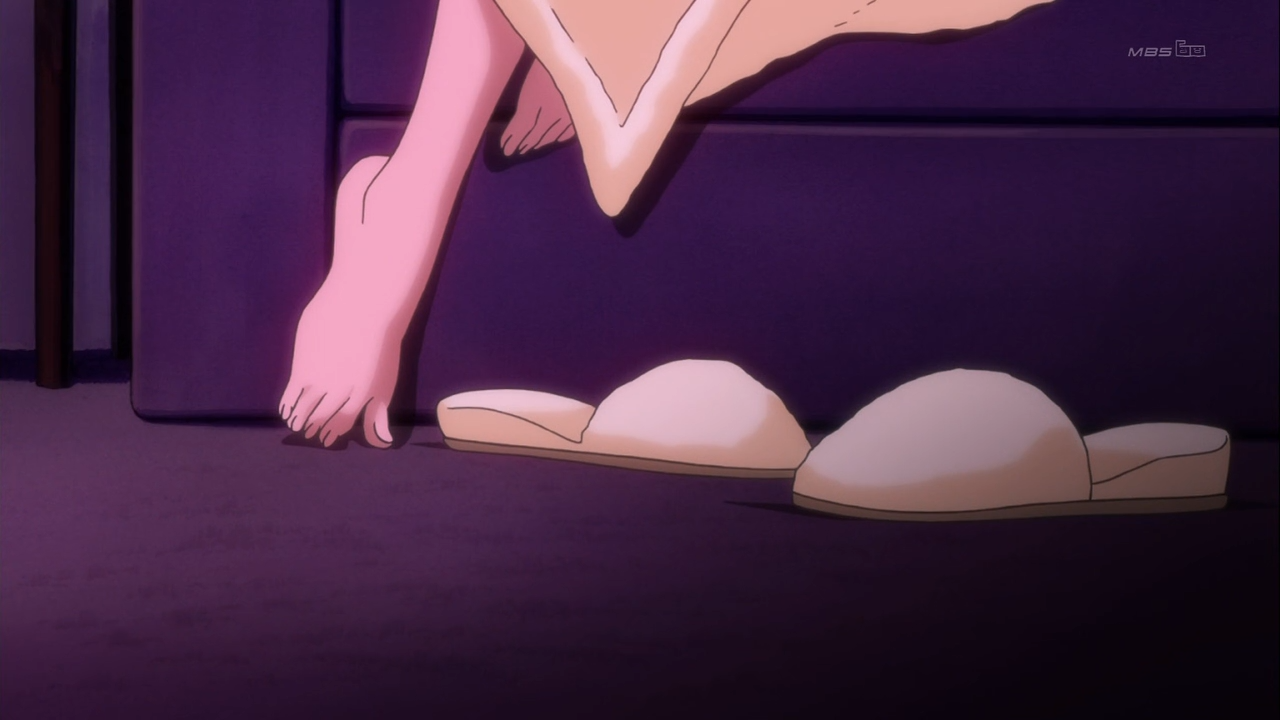 Why have things suddenly become sexual? I think this has been a gradual process. At the most recent visitation lunch with her father, Ringo notices that her father’s phone strap has changed. No longer does he have a penguin strap to match the one on Ringo’s phone. Instead, he now has an eel strap. While Ringo’s father is on the phone, it’s reasonable to assume that he’s talking to his new family, including a new daughter by the name of Aoi. What becomes clear is that the eel symbolizes how Ringo’s father has been seduced away from Ringo and her mother by another family. In the following episode, Ringo has a feverish dream where her parents are arguing when an eel crashes through the scene and permanently puts the entire family into disarray.