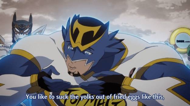 Kotetsu tries to get the other heroes to remember their old buddy by mentioning things about them only he would know. As a result, we semi-revisit old material for half of the heroes — y’know, the pretty ones. For the rest of gang, however, Kotetsu brings up some really strange and quirky facts instead. Is Fire Emblem shaving all the time because he’s gay? Oh those homosexuals, am I right fellas? Always preening! It’s disappointing that a character like Nathan is only in the anime as a joke. Why even include a homosexual character if he’s just going to be mocked? What a shame, I guess. You’ll notice that only the younger, cooler heroes got their chance in the spotlight. For guys like Rock Bison and Fire Emblem, they got nothing. Sky High got his own episode, but it was a downer. Hell, I barely know anything about Rock Bison; I had to look up the fact that his real name is Antonio. I mean, did you know that?