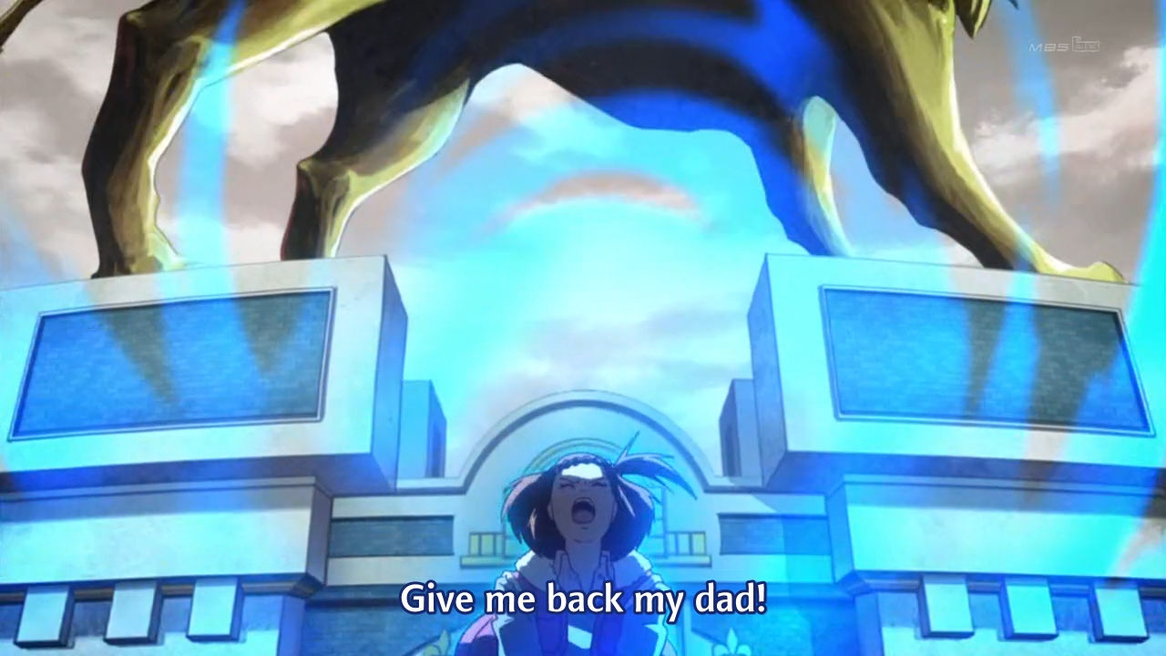 So a daughter’s love for her father saves the day yet again… a little predictably but that’s okay. Finally, Barnaby enters the fray and — what’s this? A car chase sequence with fancy 3-D animation? And as a cherry on top, we got the good ol’ cliffhanger. This isn’t quite the penultimate episode so I hope Sunrise still has more up its sleeve.